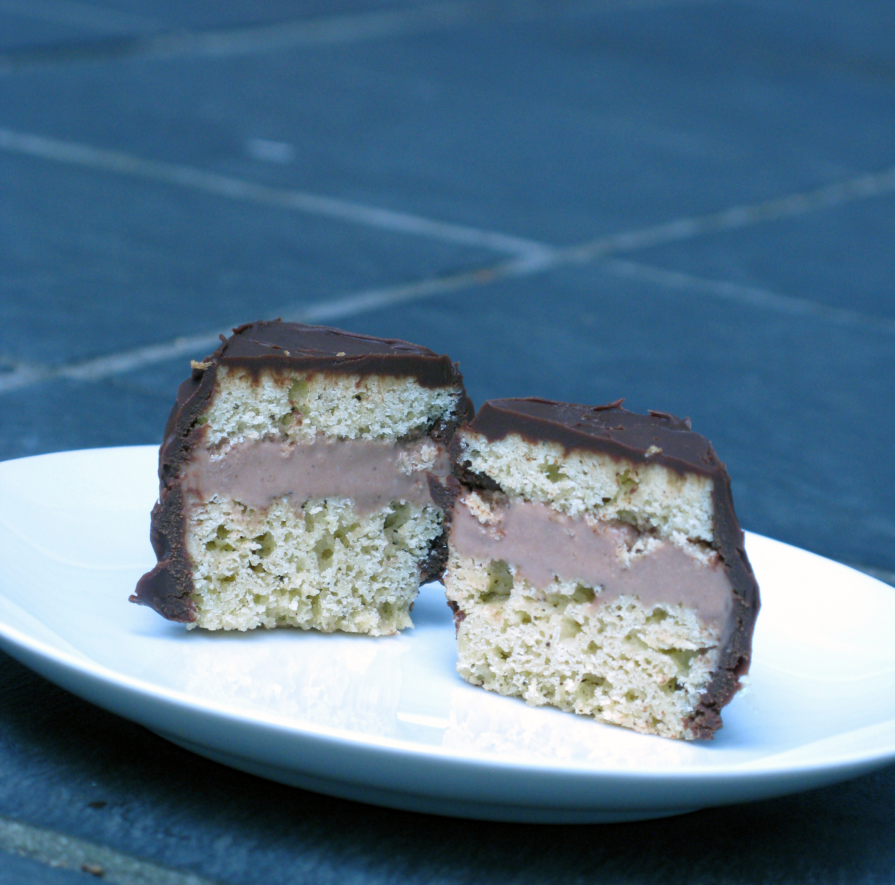 I made the browned butter pound cake and a batch of milk chocolate and black pepper ice cream from David Lebovitz. You can see all the details of the challenge and all the recipes we used on Elissa’s blog here. I had some trouble assembling the petit fours. When I tried to glaze them, the ice cream just started melting so I had to put them back in the freezer and try to frost them later, instead of pouring on the glaze. But the ice cream was truly delicious! Since my ice cream maker is still in boxes being shipped home from DC, I made it the low-tech way. David Lebovitz has great instructions for making ice cream without an ice cream maker.