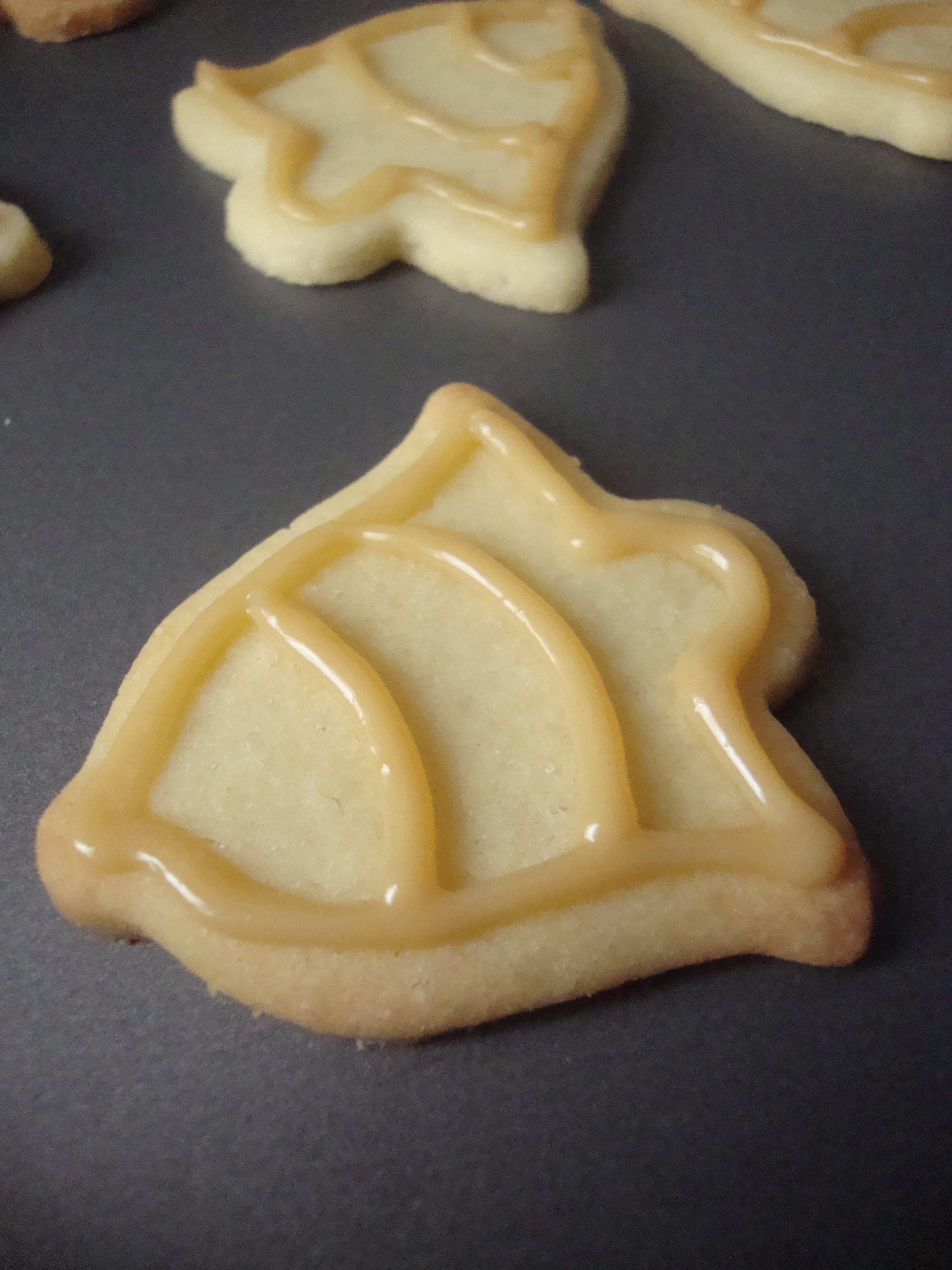 The September 2010 Daring Bakers’ challenge was hosted by Mandy of “What the Fruitcake?!” Mandy challenged everyone to make Decorated Sugar Cookies based on recipes from Peggy Porschen and The Joy of Baking. The challenge was to made decorated sugar cookies with the theme of September. We were provided with a recipe for sugar cookies and a recipe for royal icing. I chose to make mostly bells, as the church bells have played a major part in my life this September. I live and go to school right by Notre Dame so my day passes according to the ringing of the church bells — once at the demi-heure and then according to the time on the hour. Sticking to the theme that baking in fall months ought to be warm and rustic — aided along by the fact that I simply could not find food coloring at any French supermarket — I decorated my church bells with dulce de leche instead of royal icing. I would love to decorate with royal icing one day, perhaps around Christmas.
