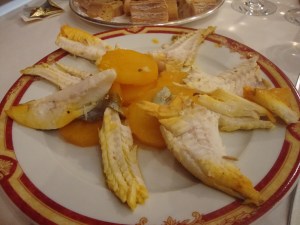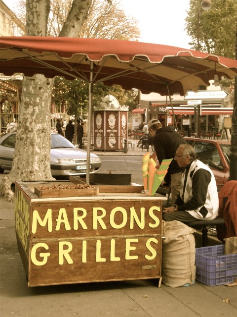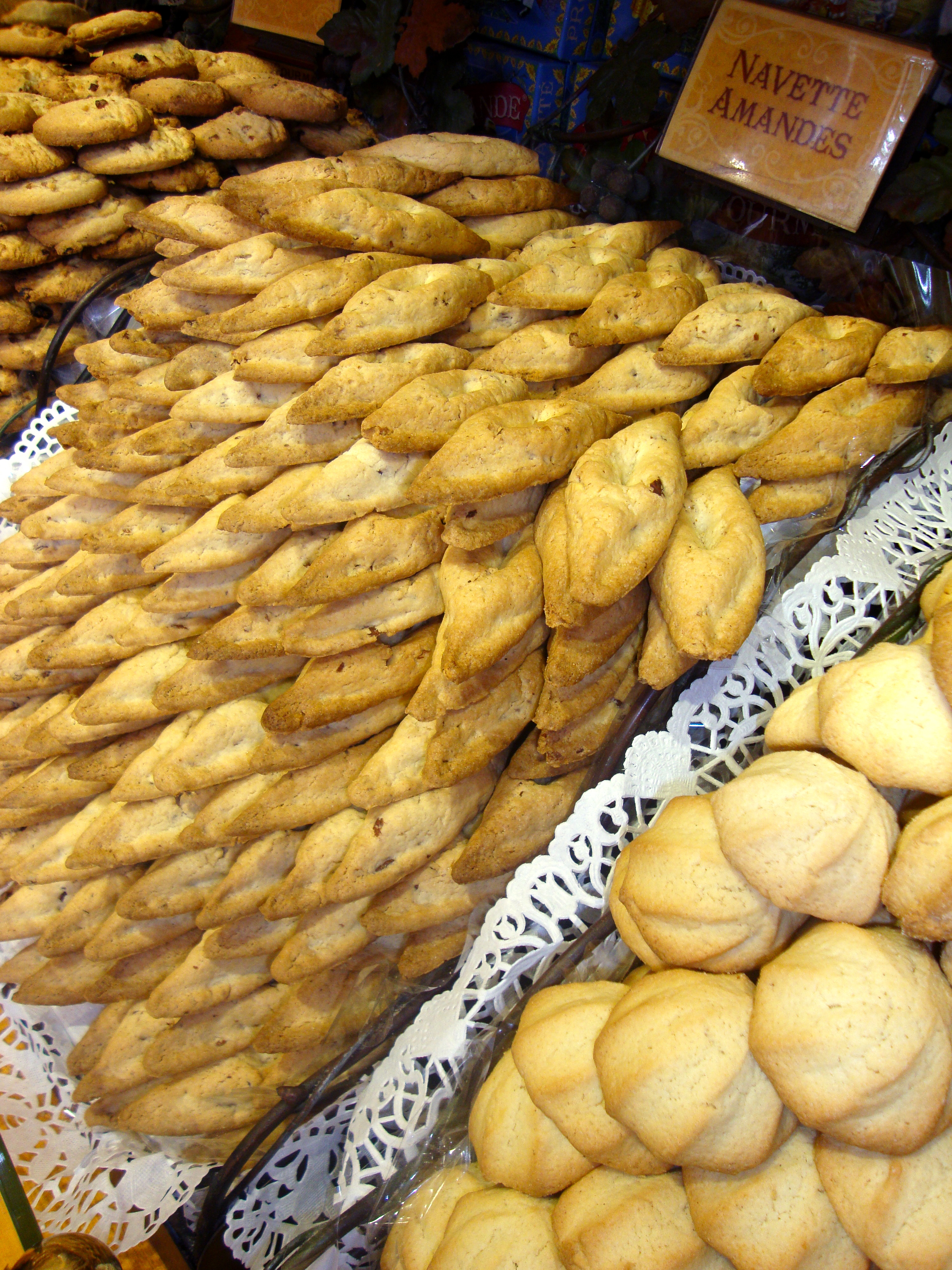 The next morning, we took a bus up to Aix-en-Provence. A long lunch of tea and salads, with creamy fresh mozzarella, thick slices of salami and prosciutto and fig jam at Le Palantino. A quick stop for a cone of hot, freshly roasted chestnuts on the Cours Mirabeau. Most vineyard tours were closed as it was Sunday and lavender season is long over, so we opted for a 6 euro ride on the little train which took us more or less in little loops around the old town. Walking around on our own proved more fruitful: we stopped at La Cure Gourmande where they eagerly walk around with tins of sweets, shoving one cookie or chocolate after another at you for tasting. And really, who could deny them that. Finally a real lemon tart, without all that excessive sweetness that is meringue, at Paul Patisserie. Then it was to Les Deux Garçons, an old brasserie frequented by many famous writers, for a final cup of tea before catching the 7:15 p.m. bus back to Marseille.