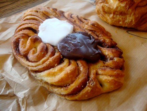 Danishes have never been my sweet of choice. Perhaps that is because I have always been grossed out by the ultimate continental breakfast item, the cheese Danish. I mean, that glob of pasty white “cheese” stuff in the middle of a sugary pastry is hardly my ideal treat in the morning. But perhaps I learned a thing or two about Danish pastries — which would probably all go by the word “Danish” in the states but, believe it or not, have actual names the way there is a distinction between “croissant” and “pain au chocolat”— from Lagkagehuset, the popular chain bakery in Copenhagen, known for its great breads and cakes. I also enjoyed æbleskiver, which translates literally to apple slices, though they have nothing to do with apples. They are actually little puffy pancakes, served with a dusting of powdered sugar and jams for dipping or smearing.