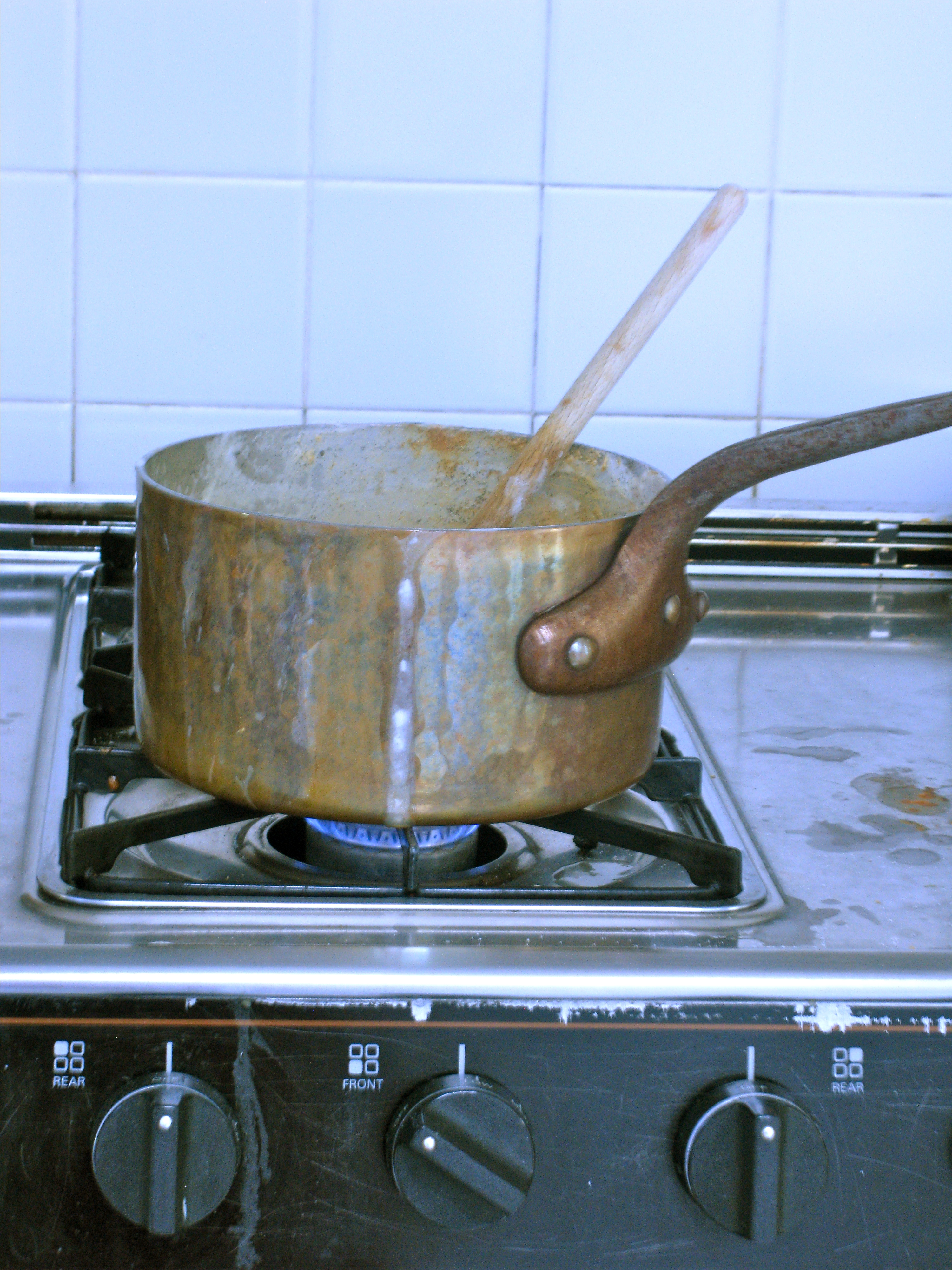 But recently I’ve quite enjoyed standing over the stove, peering over the bubbling pot, stirring to keep the thickening liquid from boiling up and over the rim. It requires getting hot and sticky and staying alert, but I took great pleasure in the thickening of my cream and sugar mixture, watching it slowly melt to a deep amber, and then spooning my dulce de leche into a small glass jar at the end. While certainly not what usually comes off of my grandmother’s stovetop, it was smooth and melding-to-the-tongue sweet. It played well off of a crumbly, barely-sweet shortbread. Despite the flakiness of the cookies and the tendency of sandwich cookies to quickly become a fragmented mess, they held up well on the way up North. As the tiny twenty-person plane shook with turbulence in the coastal winds and the over-worked engine roared next to my window, I felt like there still might exist a frontier left to be discovered in this world.