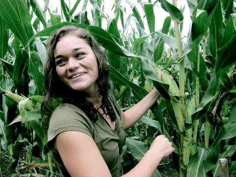 Nevertheless, we enjoyed picking Empire and Red Delicious apples, riding the wagon, cruising through the corn maze and celebrating when we reached the exit, and picking wildflowers. We ate fluffy cider donuts, coated in cinnamon sugar, from a paper bag, and peered at the cases of ginger and oatmeal cookies and racks of apple cider in the general farm store. We forgot for a few hours that we were grown-up college students and rode the parked tractor, poked our heads through the farm animal scene cut-outs and practiced our milking skills on the wooden cow. Then we piled back in the cars and drove back to campus, back to our readings, problem sets and the daily grind.