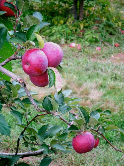 It’s hard to believe it’s fall when the air still hangs damp and heavy, broken up by droplets of rain that seem to cling to the skin, alongside clammy, greasy sweat. I just so love East Coast humidity. But one of these cloudy days found us piling into the bright-red bug convertible and driving the fifteen minutes to Tehrune Orchards. It was Apple Day at the orchard apparently, though I did my research and the real Apple Day, in celebration of local distinctiveness and finding common ground, is actually on October 21st. Lies.