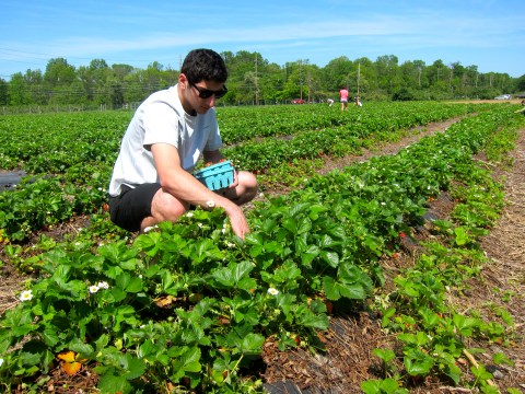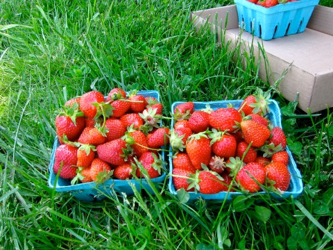 We’ve been loading up on summer activities, despite the onslaught of schoolwork. The other day we went strawberry picking at the local orchard, gathered about 10 cartons of strawberries, many of which went into a delicious strawberry pie later that week (that, when the microwave disappeared the day we wanted to make chocolate covered strawberries). We played on the (stationary) tractor and pet the goats and delighted in a little childhood fun.