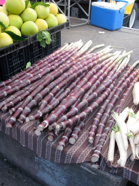 This weekend I went down the hill to the Alemany Farmers’ market for the first time — ever. It’s odd that, even though we live in such close proximity to it, we always chose the market at the Ferry Building. Perhaps that market has a soft place in my heart after many mornings when I was younger spent at the old Embarcadero parking lot location eating watermelon and root beer flavored honey straws. But these days that location is madly overrun with people, so we went for a quick stop at the Hayes Valley Grill stand for the mandatory crab cake sandwich — char-grilled crusty roll, creamy, toasty fresh crab, with a hearty swipe of herb aioli, mixed lettuce and sliced cabbage, and a couple of tomato slices — and a leisurely stroll through the Alemany market. We found fresh corn tortillas, spicy smoked scallops, vibrant chard in every color of the rainbow and even long stalks of sugar cane, which I had to be convinced out of purchasing before I even knew what to do with sugar cane besides eat it raw. I think I’ll be back just for the smell of corn over the fire.