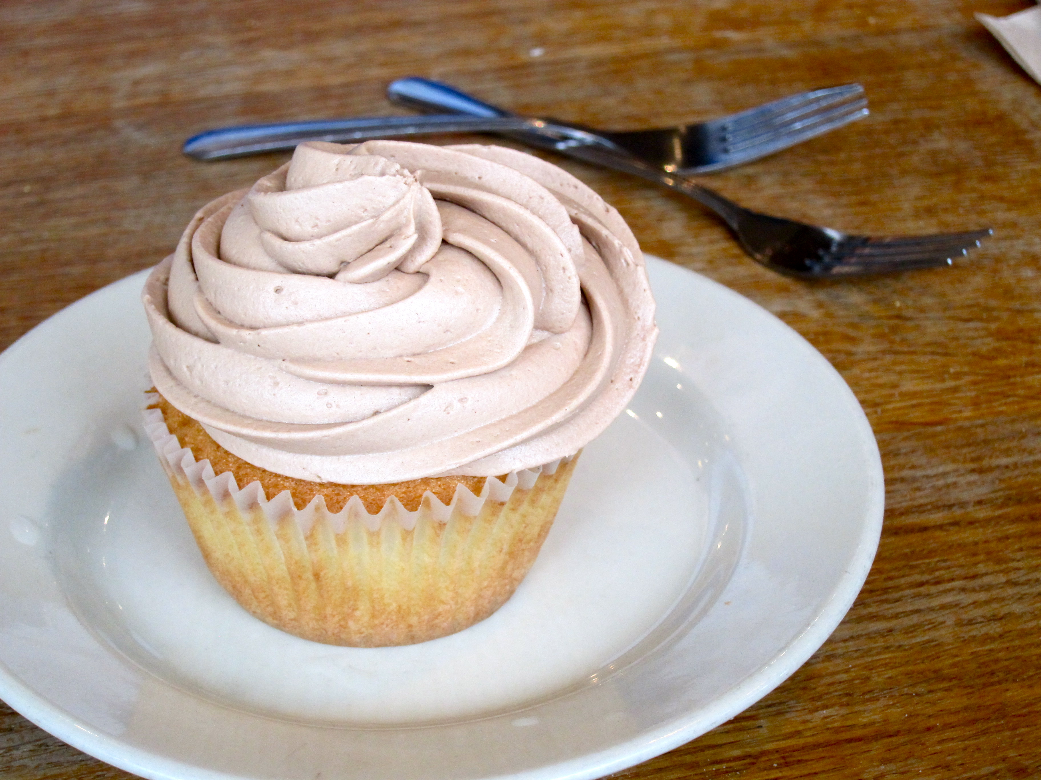 A few weekends later found me in Boston, fulfilling a love affair with Flour, a bakery in Cambridge. We ate there twice in two days. A chunky cookie with coconut, nuts and chocolate chips, a milk chocolate hazenut cookie, and a ginger cookie for the bus back to New York City. A salad of greens, grilled focaccia, mozzarella, tomatoes, and white beans. A sophisticated BLT with dark crispy bacon strips, aioli, and ripe tomatoes. And finally a vanilla cupcake with chocolate buttercream to share, my favorite combination of cake and frosting.