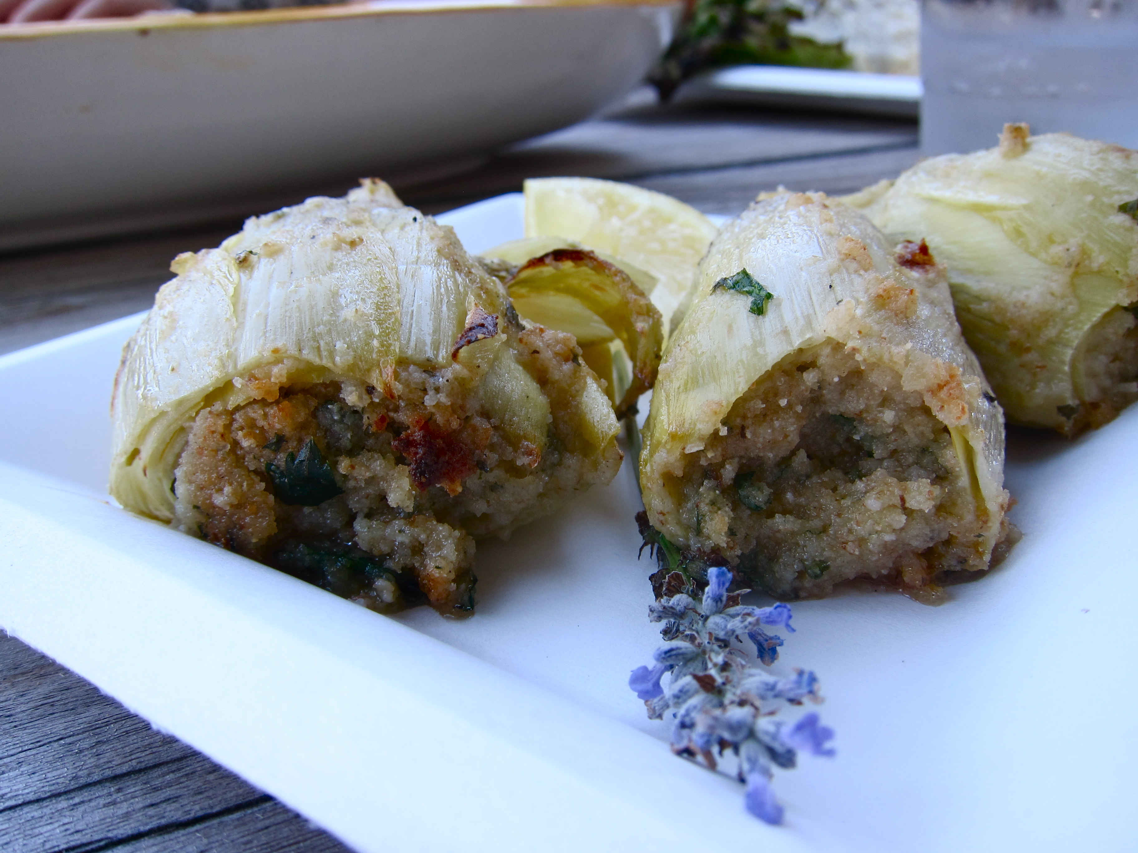 Another favorite, breaded calamari, then (to follow) stuffed artichokes, and a lackluster chickpea cake that everyone agreed needed zing.