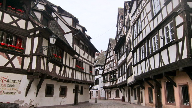 The sun did rise, and my brother and I took a walk along in river in Strasbourg, stopping in at a boulangerie on the way back at exactly six a.m. Unfortunately, we never saw the sunrise because the sky was shrouded in clouds. Still the cobblestone streets were peaceful, mostly deserted save for the few men setting up white tents for the market in an old square and the street-cleaning trunks making their way down the larger roads.