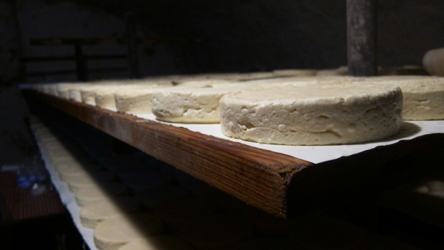 From there, onwards to the mountainous region of Alsace and the Vosges. We twisted around the slopes and mountain passes, passing ski lifts running without snow on the ground, green pastures, studded with wildflowers, on which vosgienne cows — known for their black and white coloring, their delicate faces, a cow species renowned for its beauty (who knew that existed?) — grazed before being called into the barn to be milked. We descended on foot into cool caves, where rounds of cheese, tinged pink of the outside, age for several weeks.