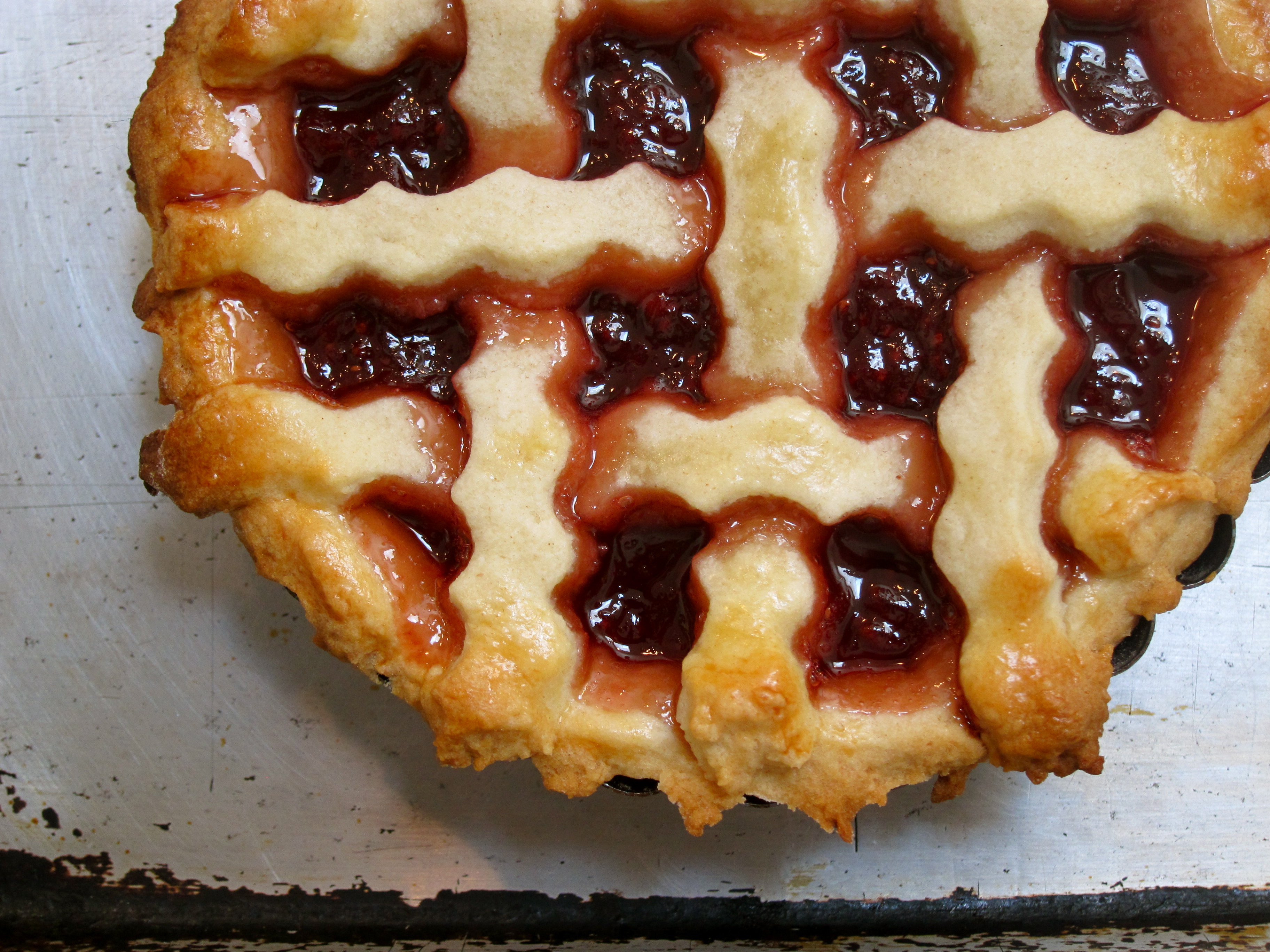 These tarts bring a smile whenever I think back to them, and they could not be simpler to make. Just a bit of tart dough, rolled out and cut in strips, some quality jam (I used a jar of strawberry jam we picked up on our family trip to The Apple Farm), and a little bit of patience for the weaving.