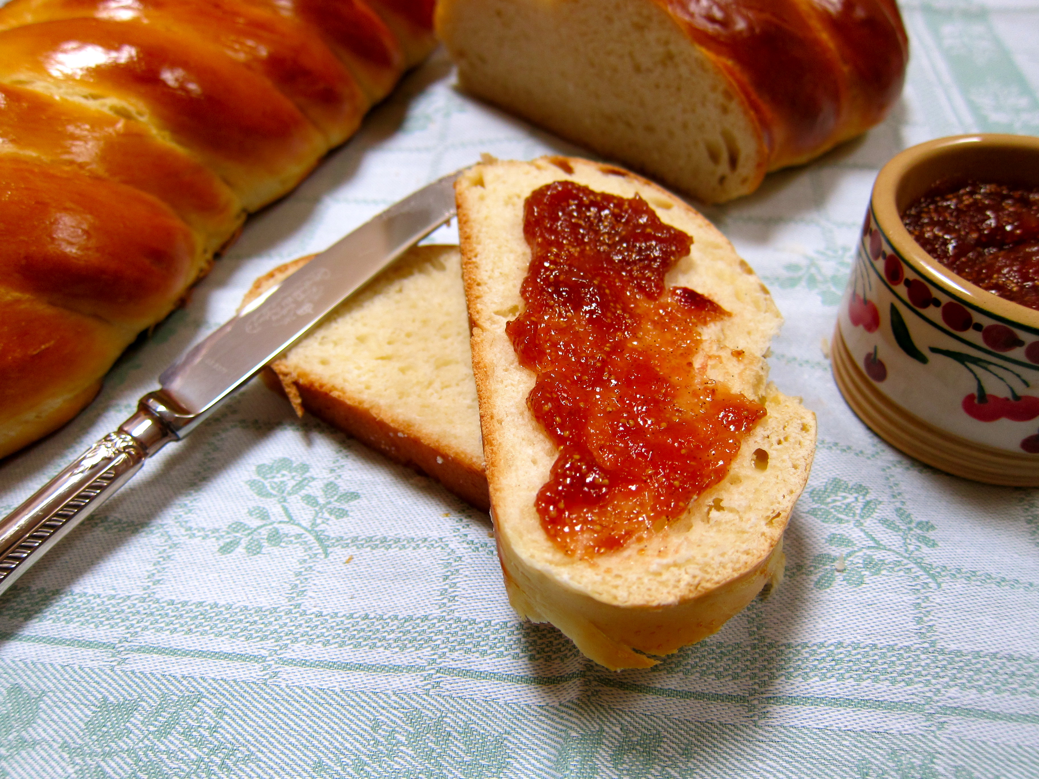 I followed this recipe for two (huge) loaves of challah to a tee. This is an oil-based version of the bread, I think next time I will try the milk-based version, which should give a richer, chewy crumb.